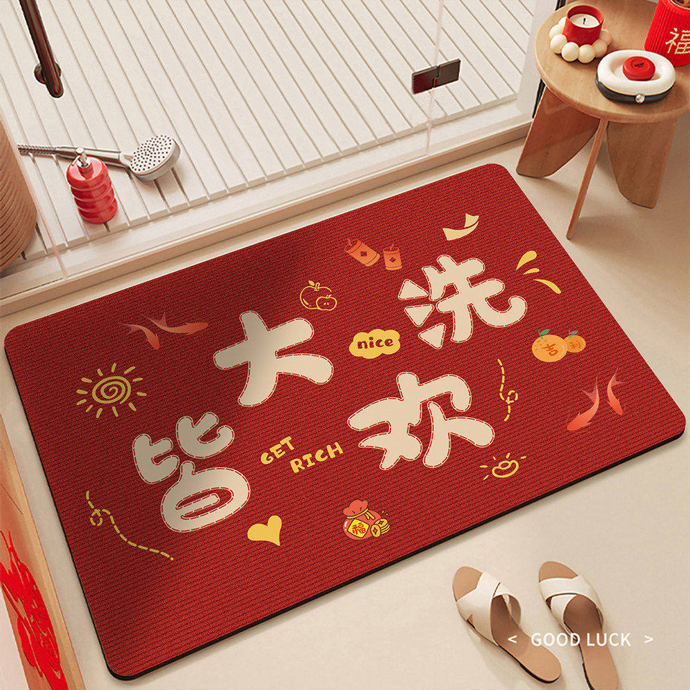 新年浴室地垫硅藻泥吸水速干防滑脚垫洗手台卫生间门口防摔地毯子