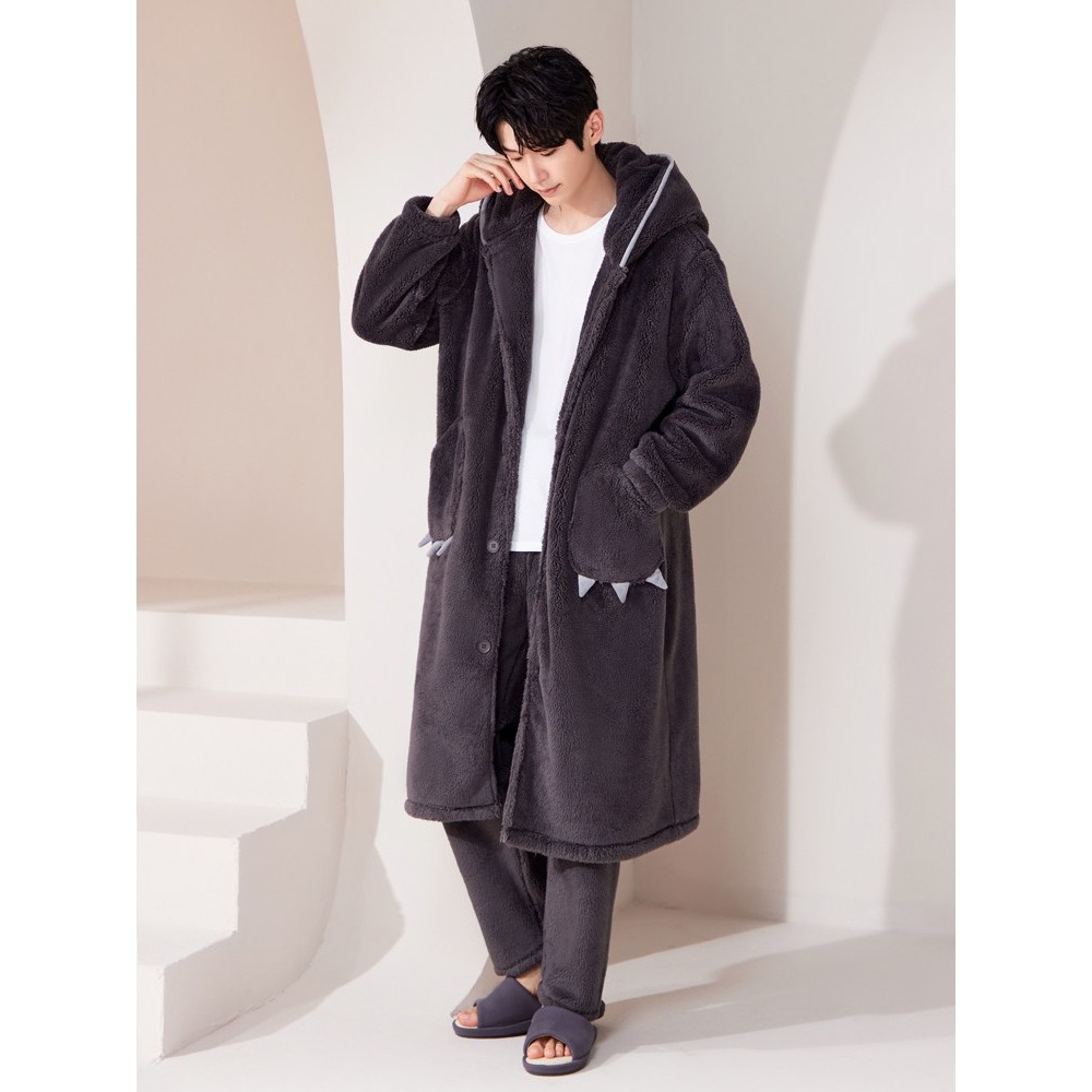 红豆睡袍男秋冬加厚长款珊瑚绒情侣睡衣女可爱卡通法兰绒浴袍休闲