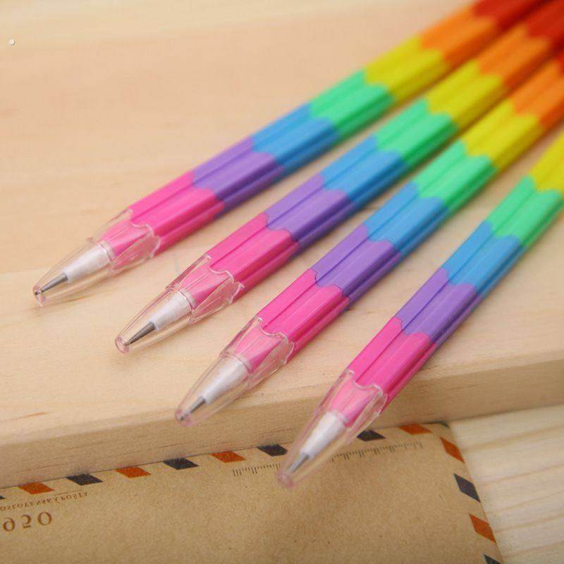 积木拼装铅笔可拆装创意免削多功能彩虹学生免削铅笔积木竹节新品