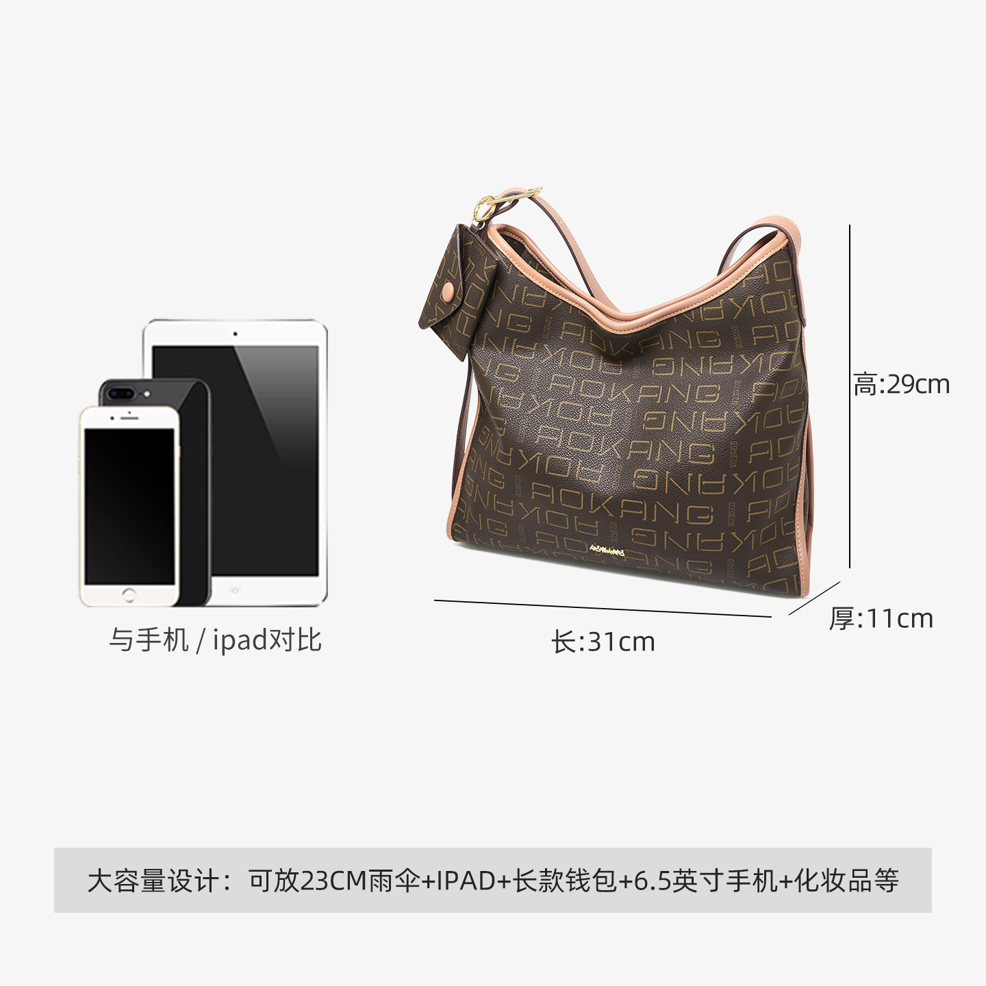 奥康 女包2026新款高级托特包通勤单肩包大容量手提包斜挎hobo包G