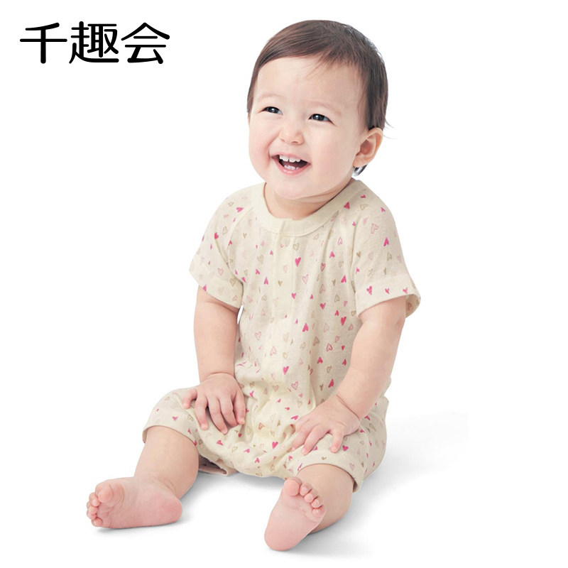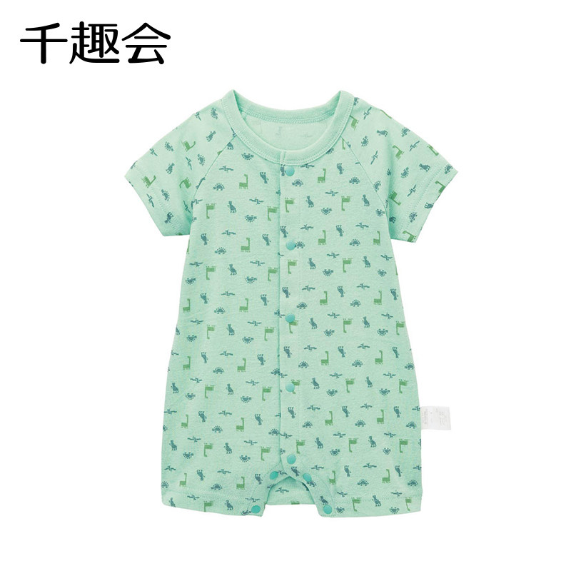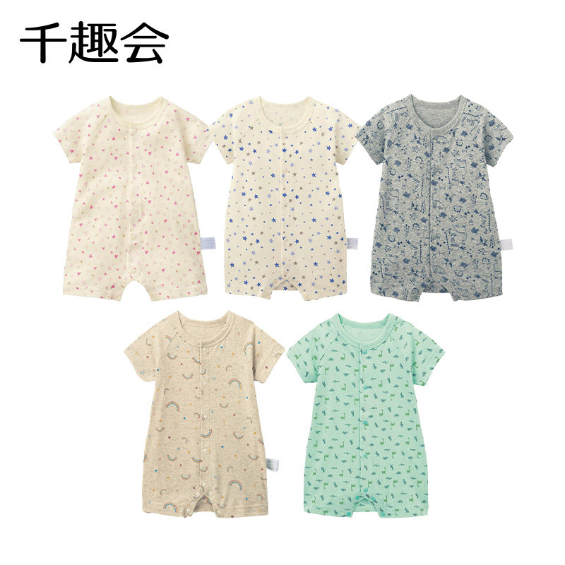 千趣会夏款婴童哈衣前开式短袖平角款纯棉透气婴儿宝宝连体衣