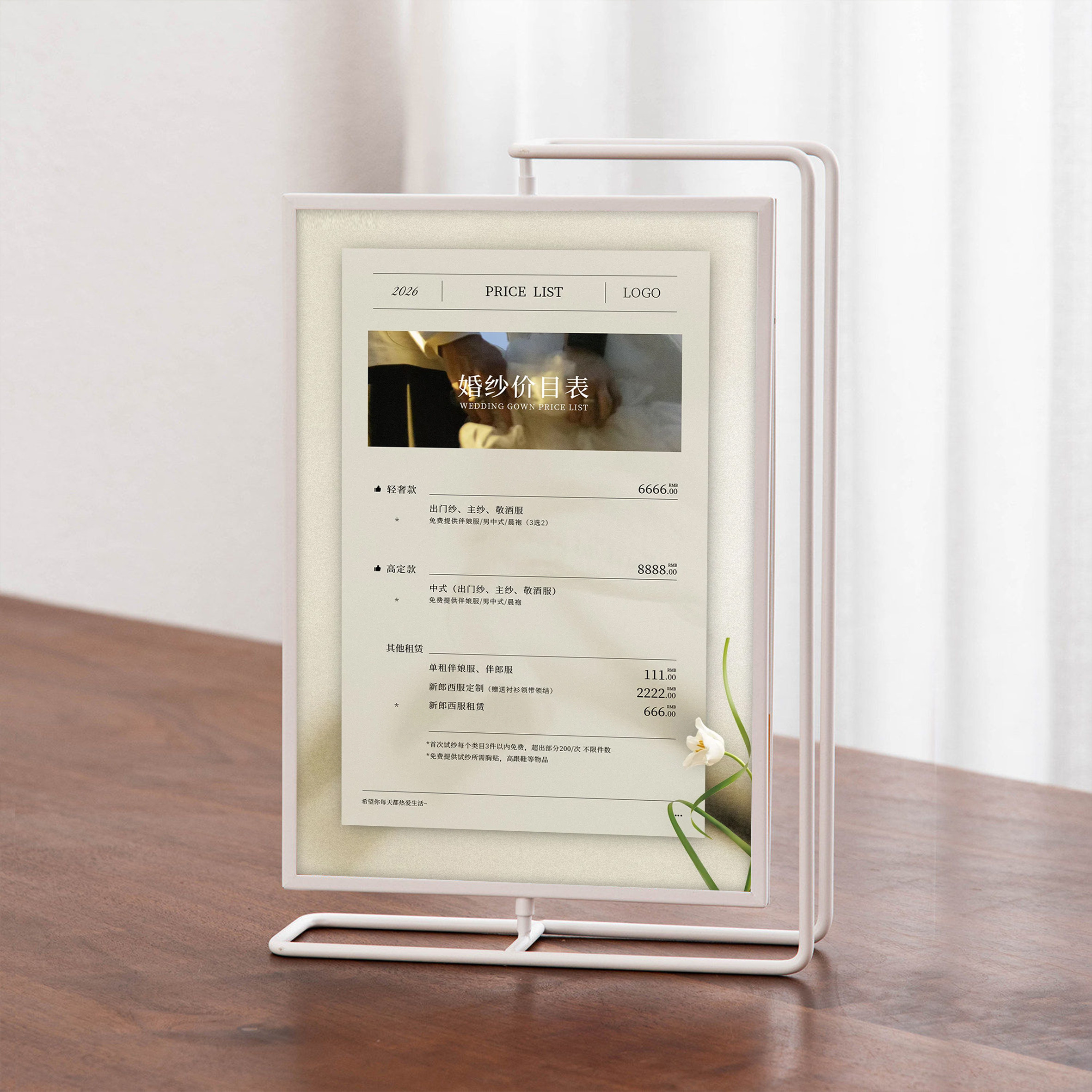 婚纱摄影婚礼跟拍价目表金属旋转创意桌牌摄影工作室情侣影楼摆台