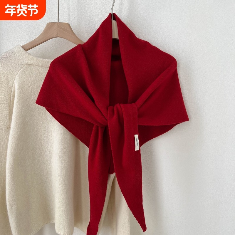 三福围巾流苏韩系高级感红色加大围脖披肩两用外搭女冬季2025新款