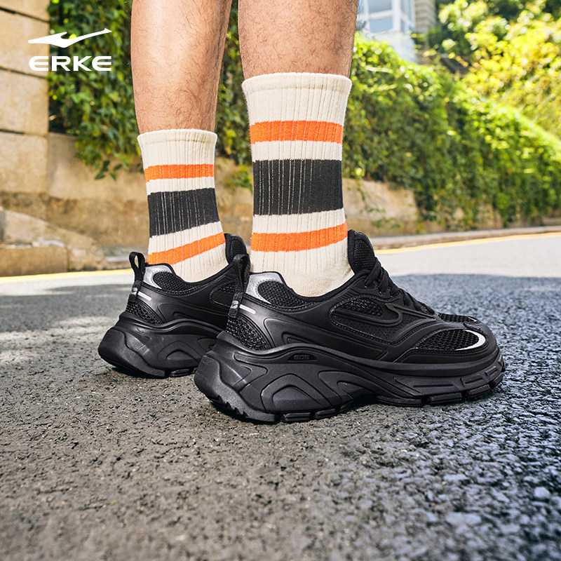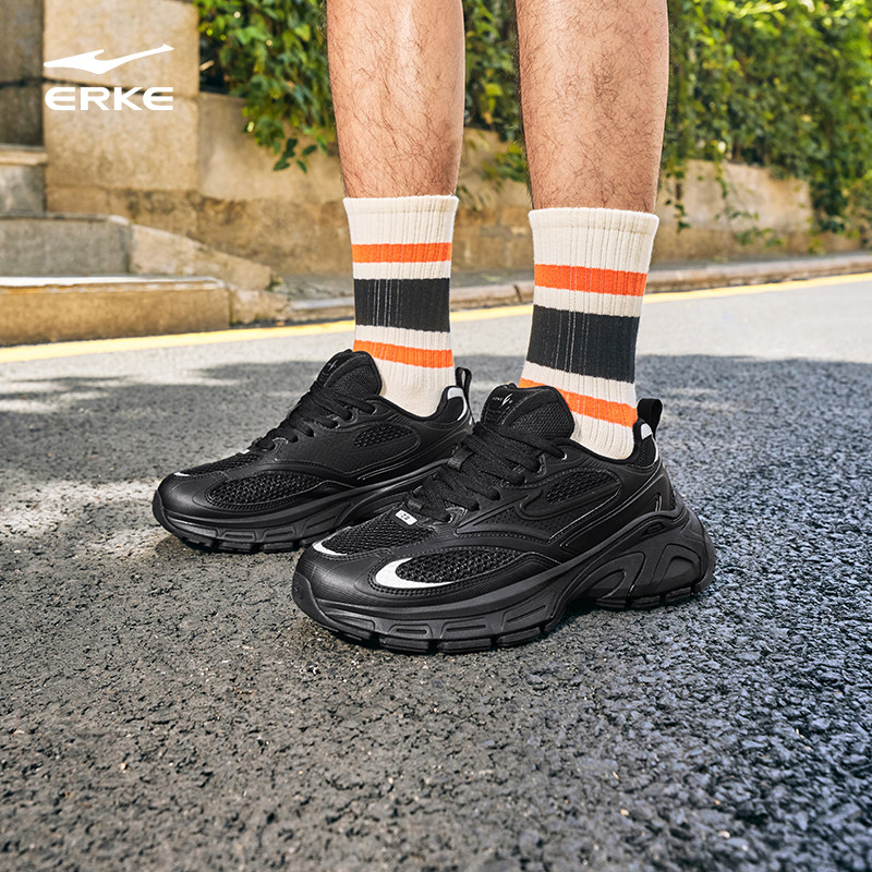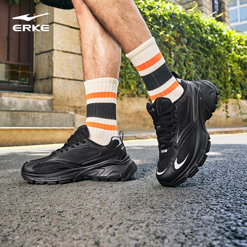 鸿星尔克鸿羽2春季新款透气网面运动鞋厚底增高复古千禧休闲鞋男