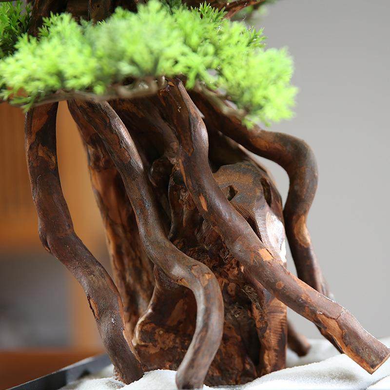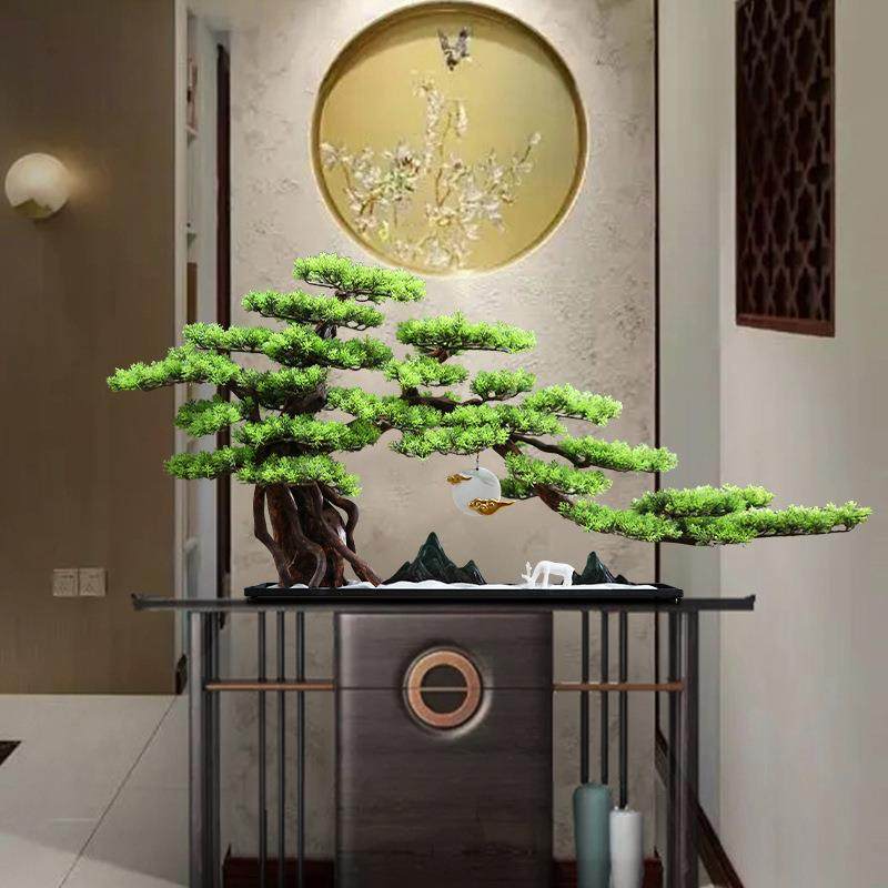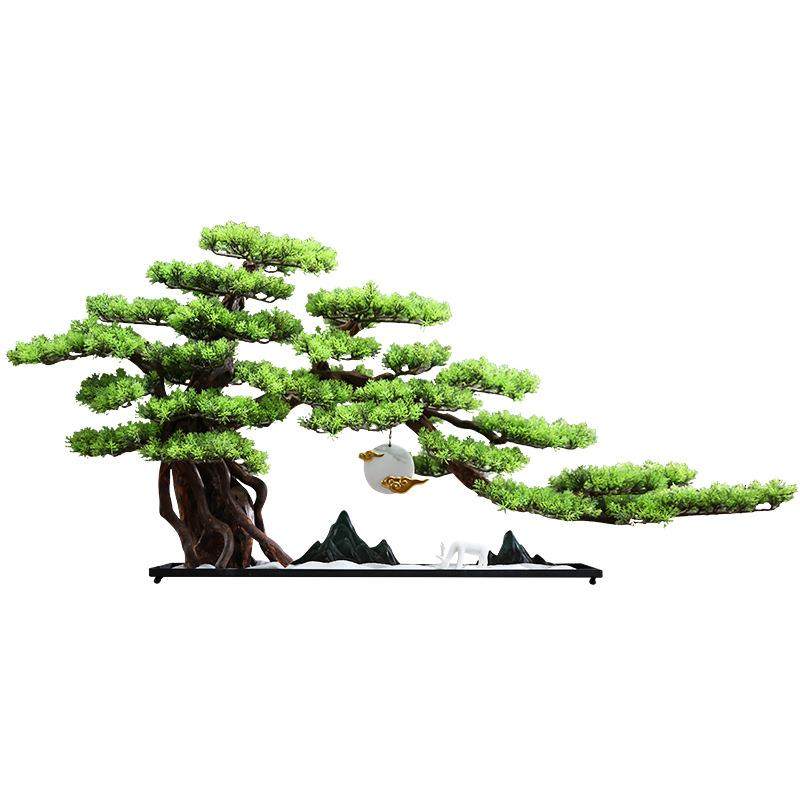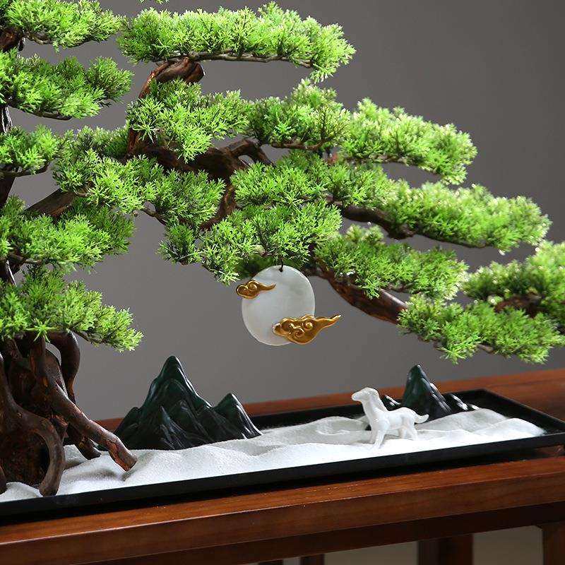 创艺新中式迎客松仿真摆件客厅玄关样板间酒店禅意根雕家居装饰品