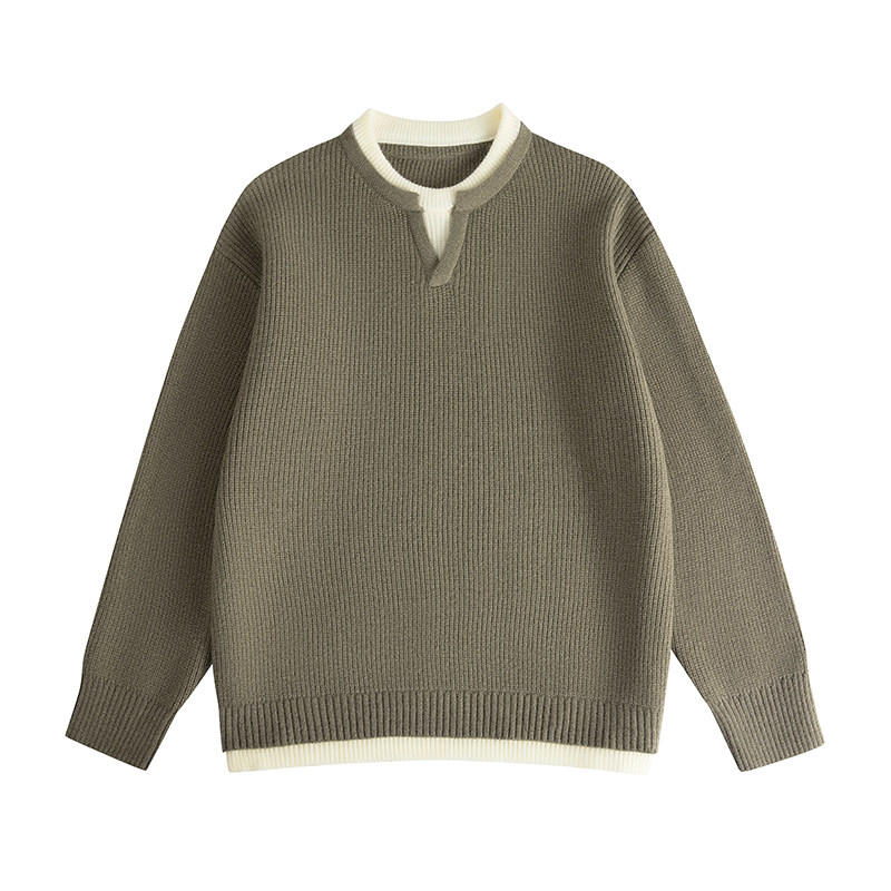 回力V领假两件毛衣男冬季2025新款加厚慵懒风男生针织内搭打底衫