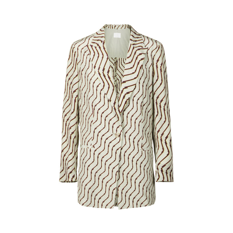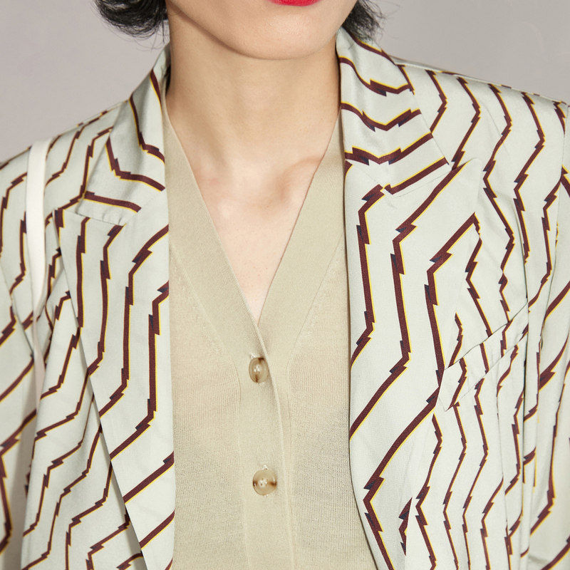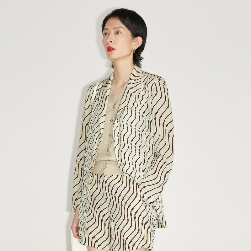 LESS桑蚕真丝西装女休闲时尚个性条纹印花丝绸西服2M7700170