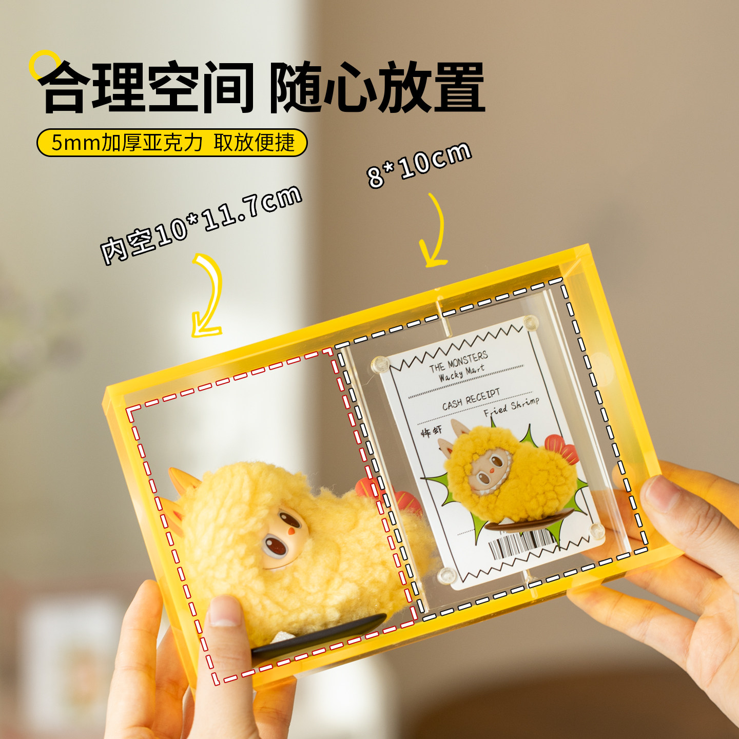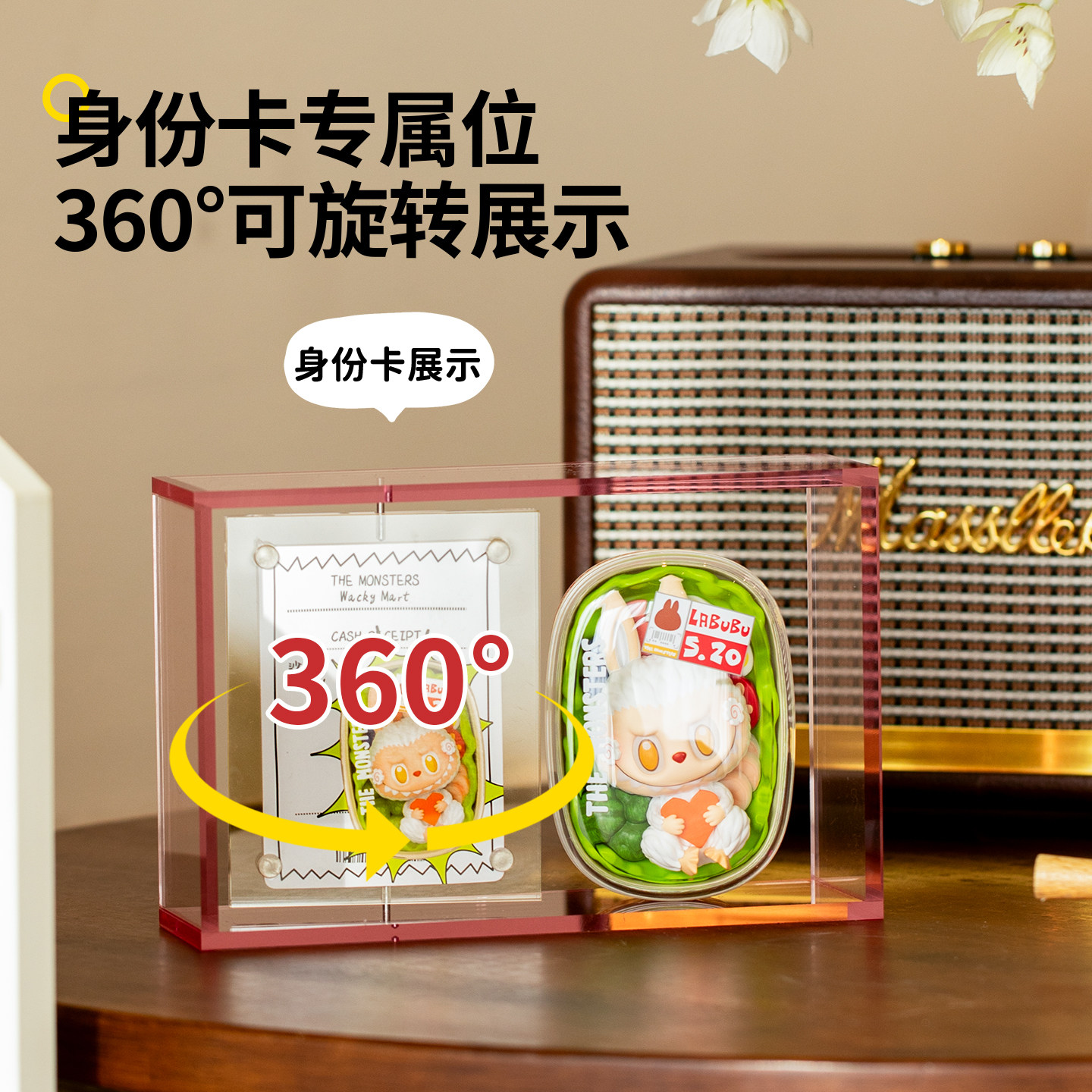 拉布布亚克力盲盒收纳相框手办摆件磁吸透明旋转身份小卡展示架子