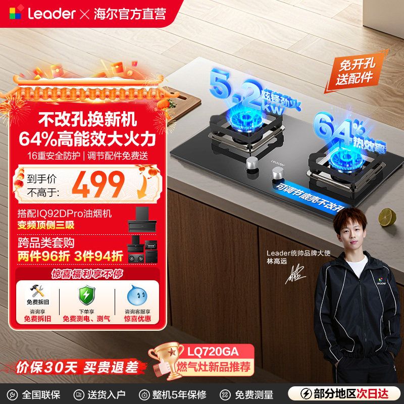统帅Leader海尔智家大火力燃气灶家用嵌入天然气灶台式猛火灶官方
