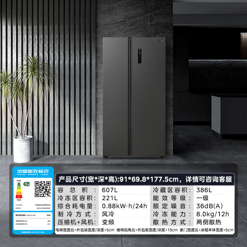 【以旧换新】美的607对开双开大容量无霜一级超薄嵌入家用冰箱