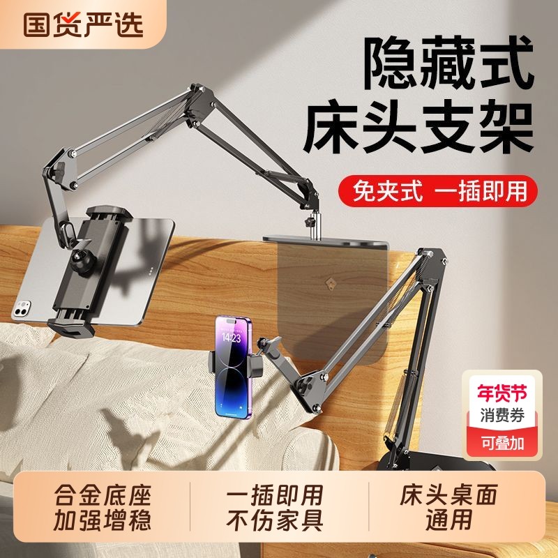 隐藏式床头手机支架懒人支架床上多功能通用手机平板电脑ipad桌面旋转支撑架宿舍沙发躺着直播追剧神器