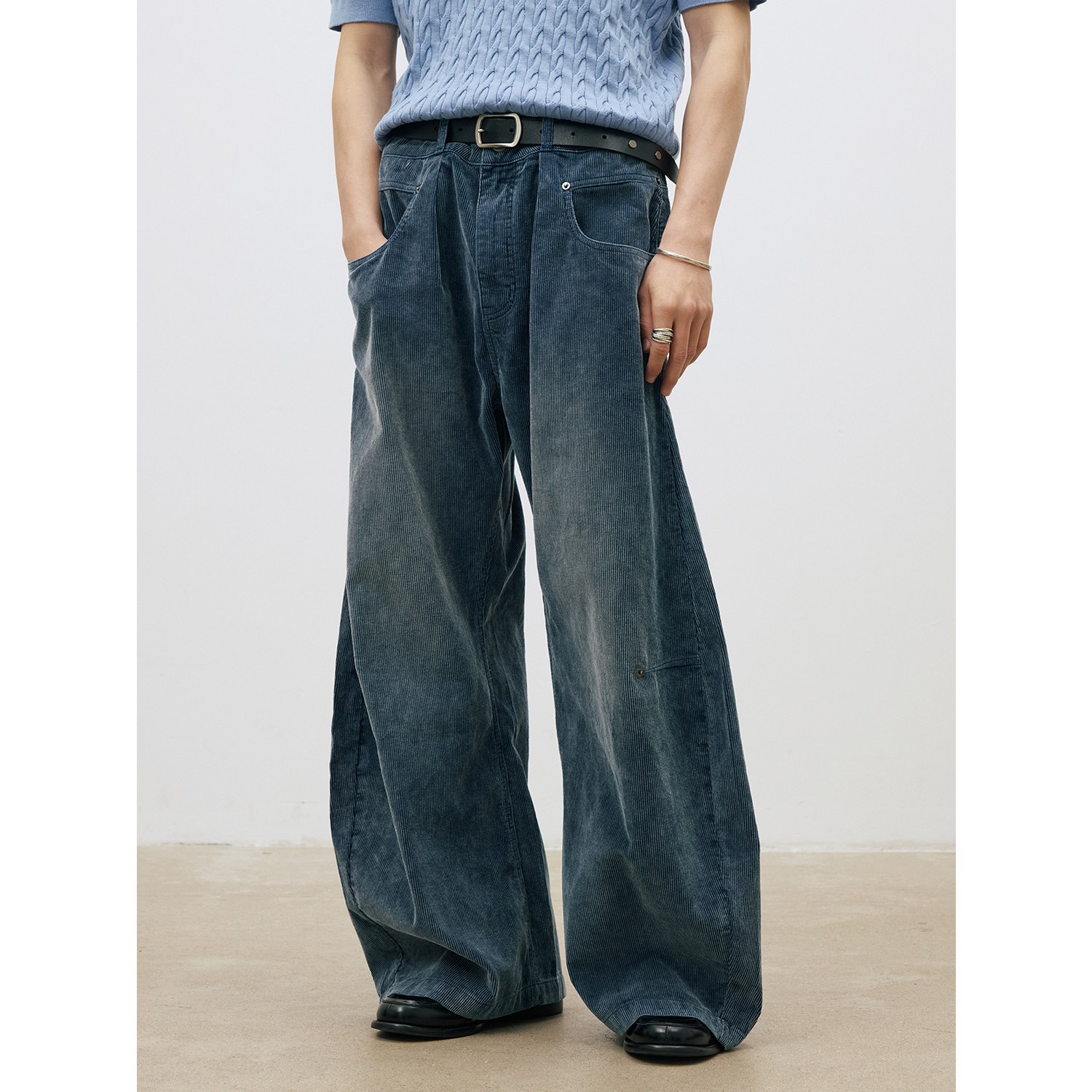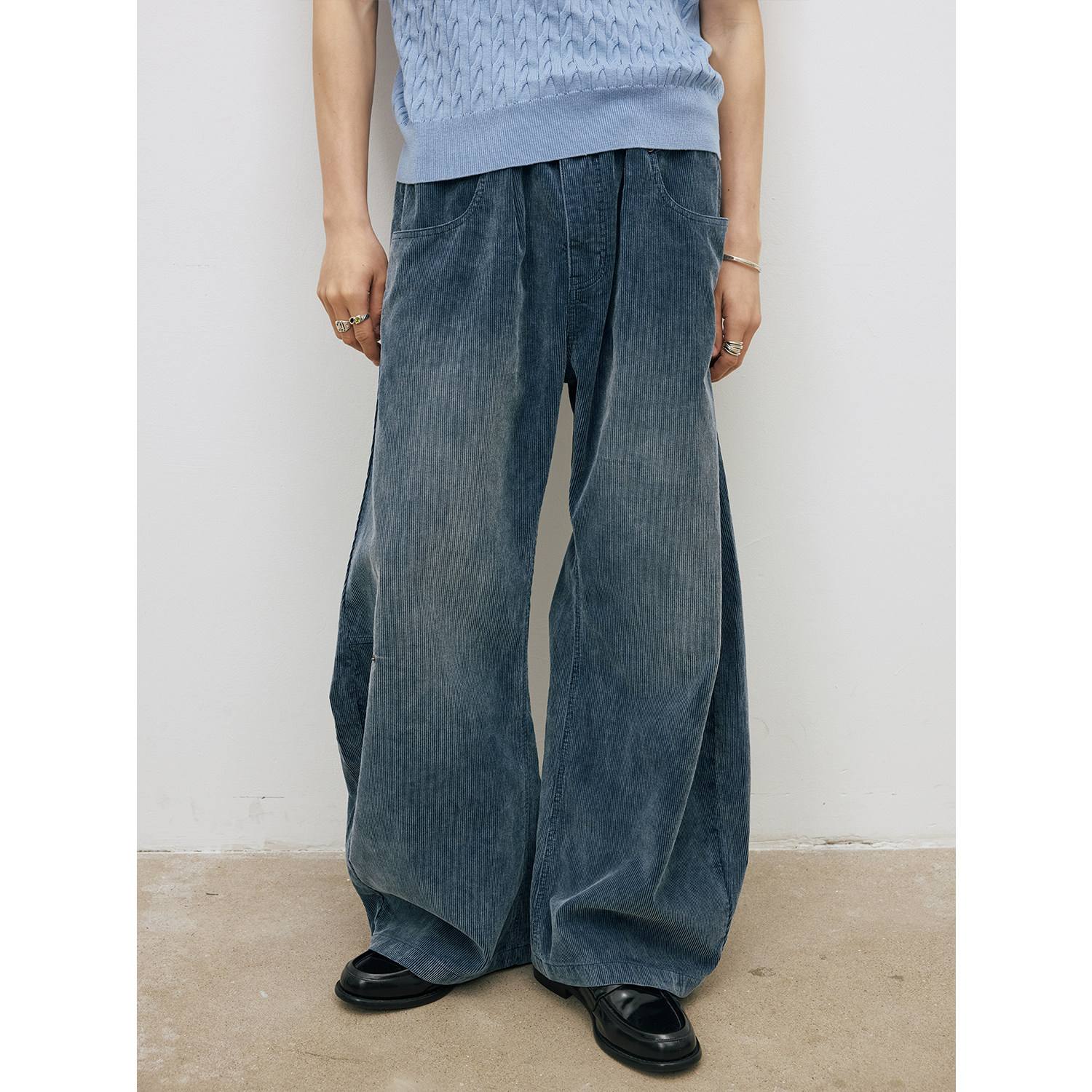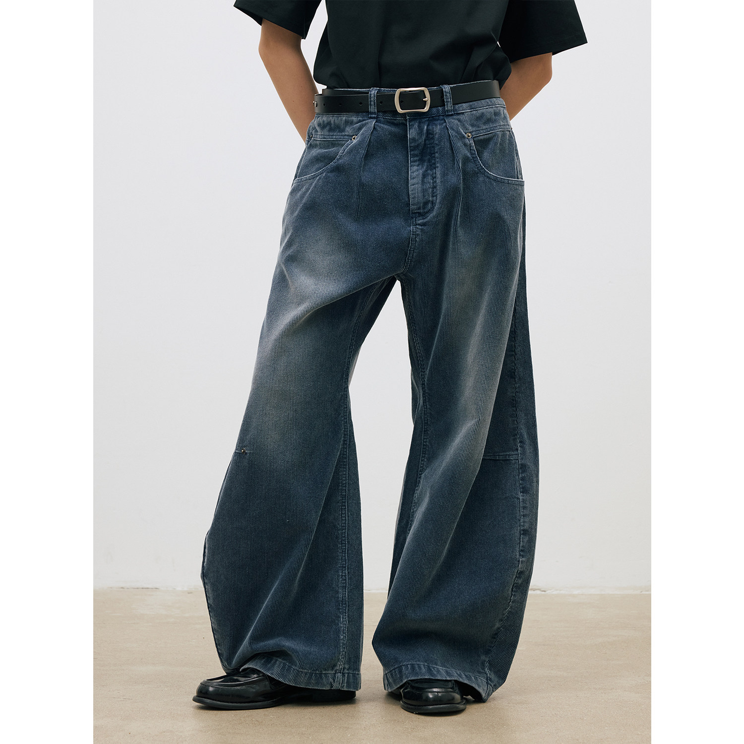 LR MADE 26SS 做旧灯芯绒 同色马骝 复古褶位弯刀休闲牛仔长裤