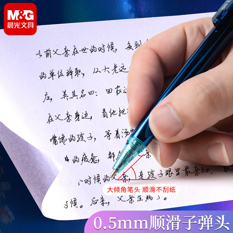晨光按动中性笔黑色笔速干顺滑高颜值红蓝碳素笔考试办公用签字笔