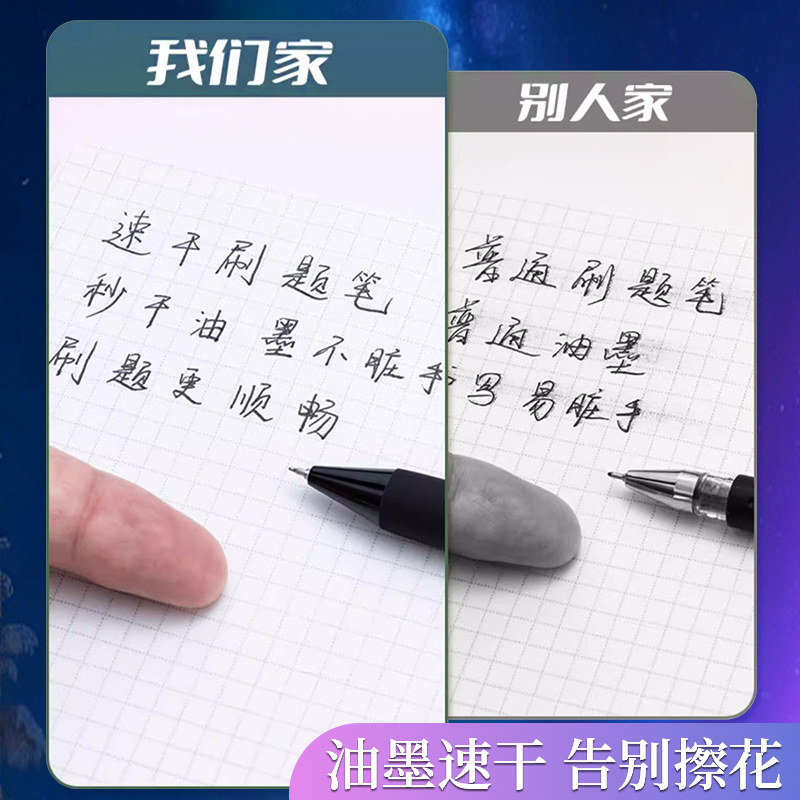 ST刷题笔高颜值按动中性笔圆珠笔黑色水笔小学生专用考试0.5速干碳素笔水性黑笔按压式做笔记签字笔非按斤卖