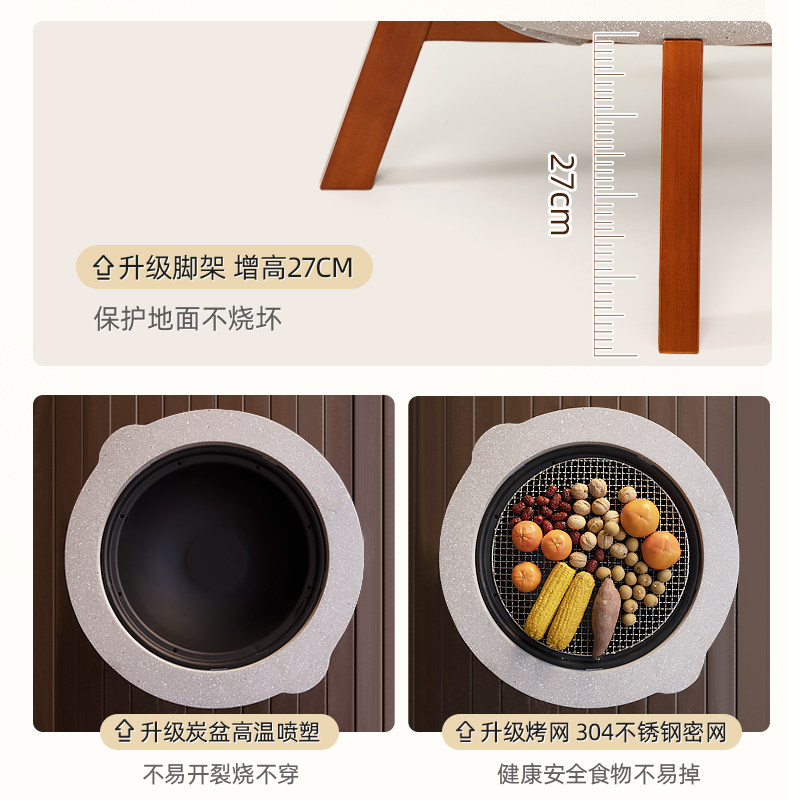 烧烤炉子家用围炉煮茶烤火炉套装冬天室内烤火盆庭院木炭取暖器具