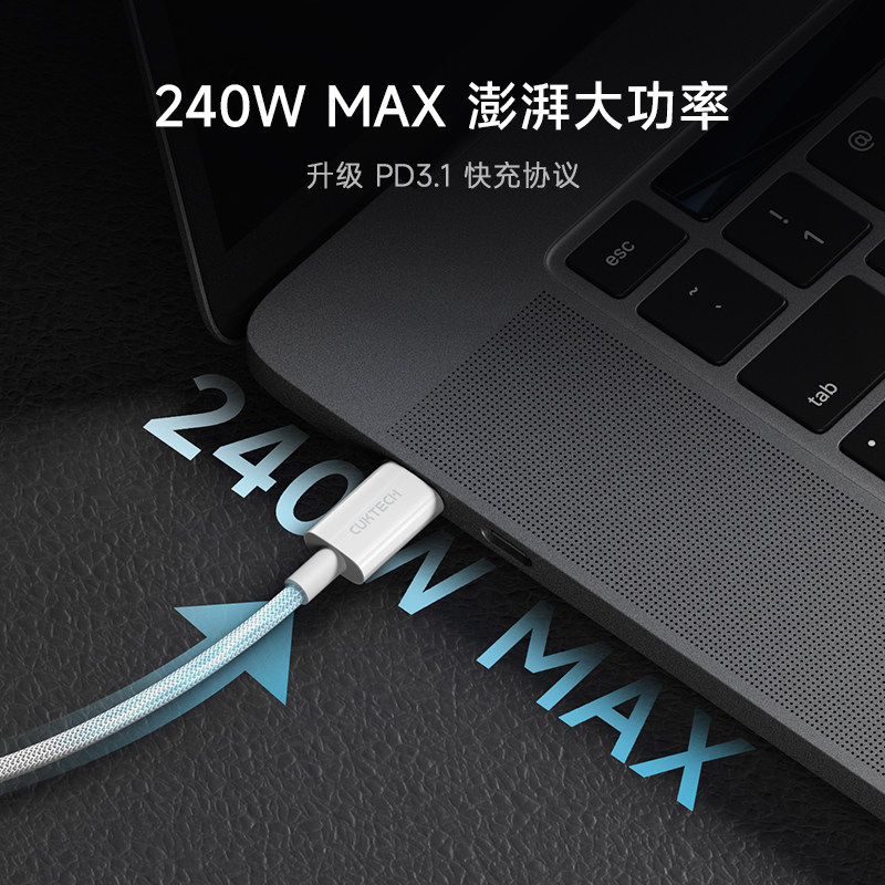 CUKTECH酷态科5A数据线C-C快充线公对公240W充电编织线适用于小米14 Pro华为Macbook笔记本Switch安卓手机17