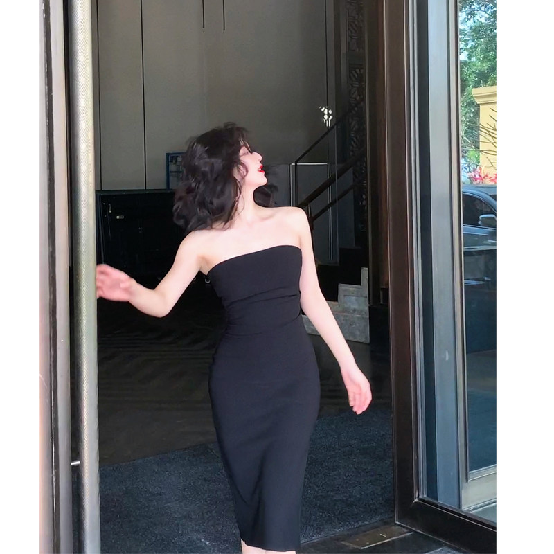 赫本复古风新款裹胸小礼服小个子开叉显瘦收腰气质性感小黑简约裙