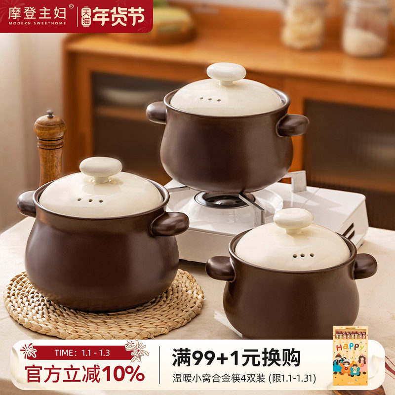 摩登主妇砂锅家用炖锅陶瓷煲汤沙锅燃气灶专用耐高温干烧不裂石锅