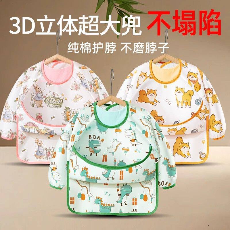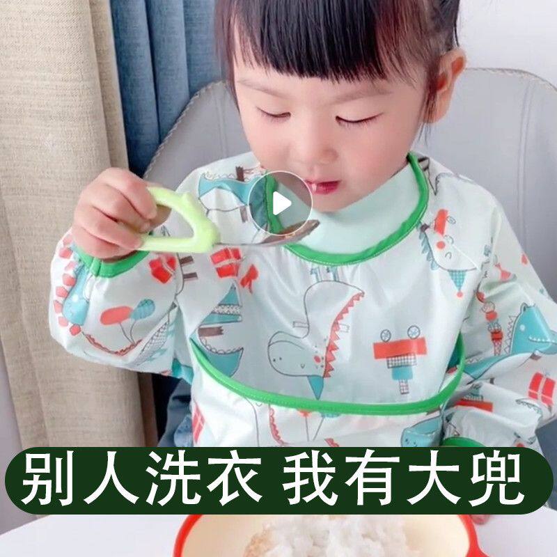儿童罩衣围裙带袖子卡通擦手防油防污宝宝吃饭围兜冬季耐磨耐脏