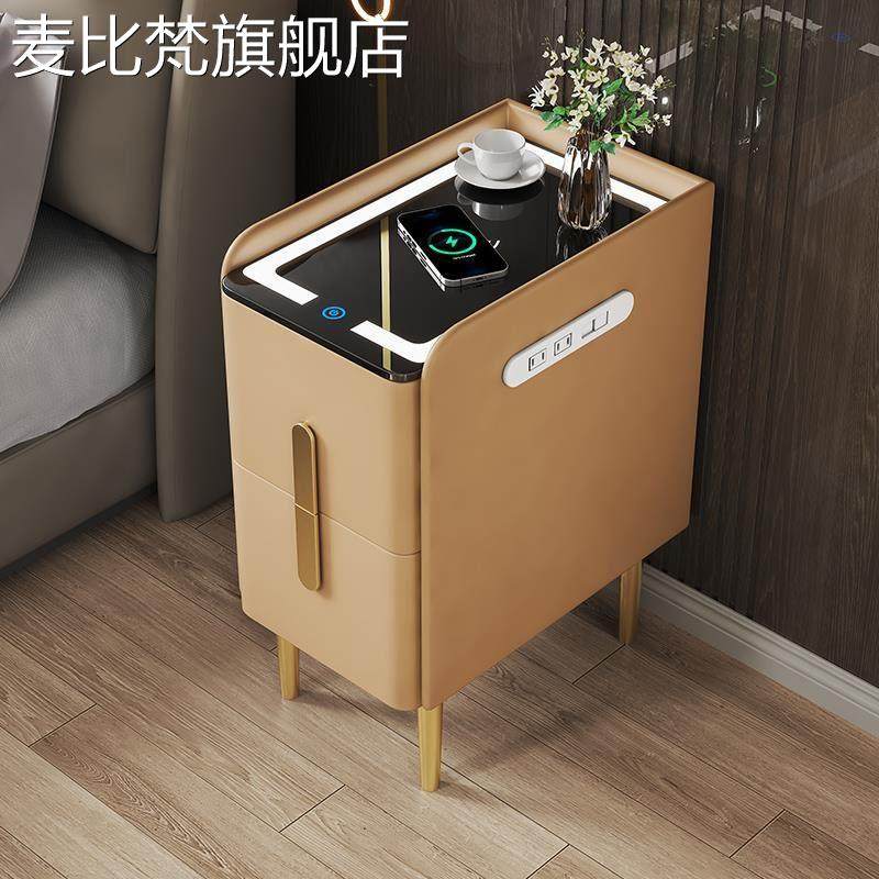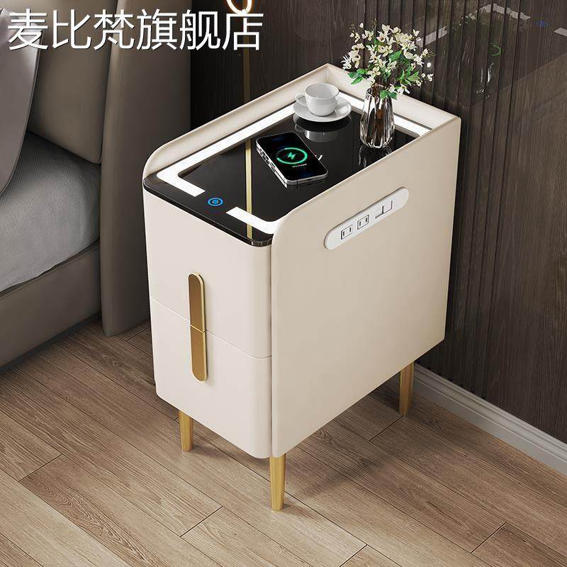 麦比梵智能床头 柜 简约现代床边 柜 新款2025爆款超窄20cm迷你实木卧室储物摆件饰品床笠拉车