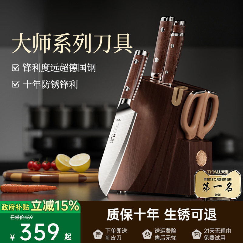 大师刀具厨房套装组合家用厨房实木刀架套装