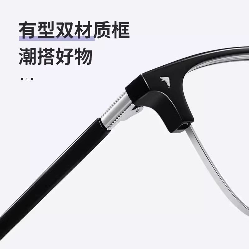 半框近视眼镜男款防蓝光平光镜可配度数高级感斯文理工男痞帅眼睛