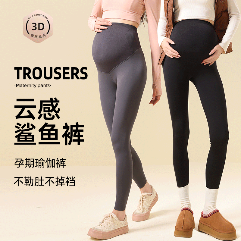 孕妇鲨鱼裤秋冬打底裤子外穿瑜伽裤加厚托腹加绒保暖大码孕妇冬装