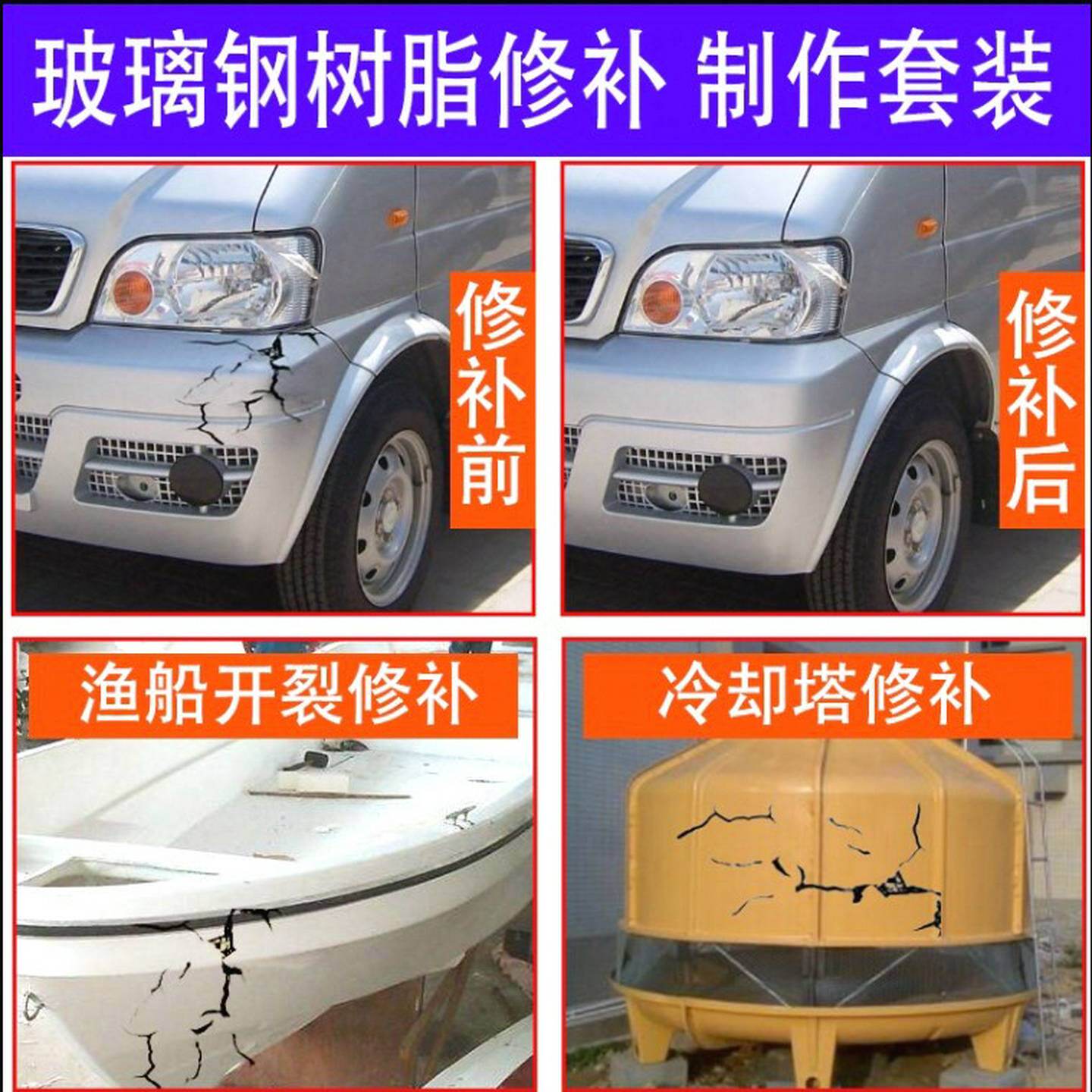 191树脂196玻璃钢胶水渔船船用补漏汽车货车保险杠修复套装纤维布