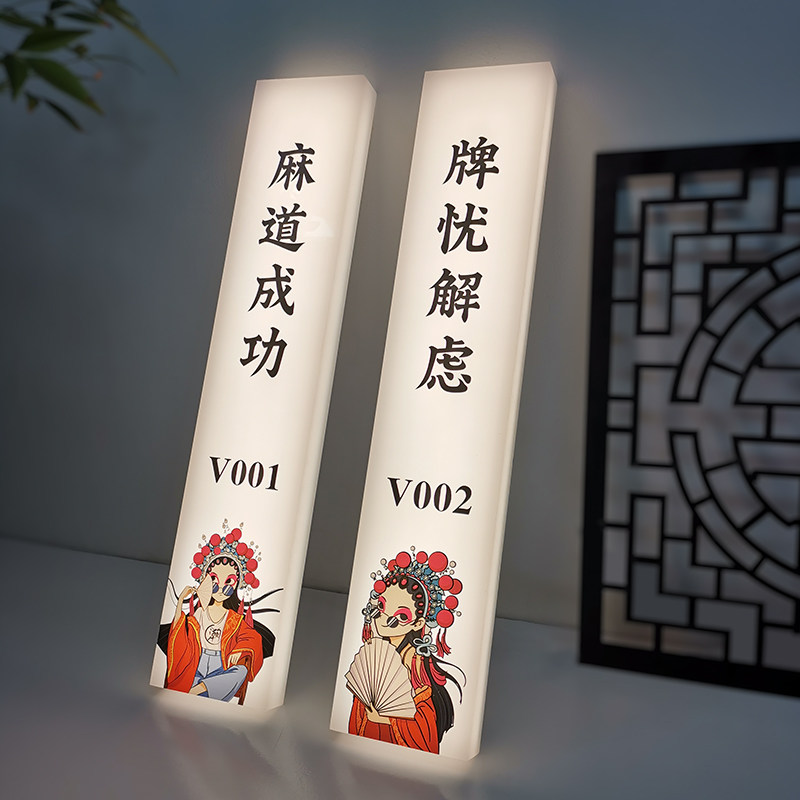 国粹麻将房门牌国潮麻将馆标识灯网红自助棋牌室灯牌创意包间灯箱