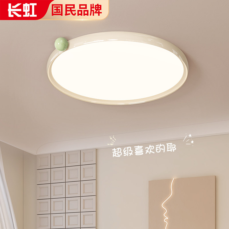 奶油风卧室吸顶灯法式中古奶油风创意小奶豆主卧灯圆形超薄房间灯