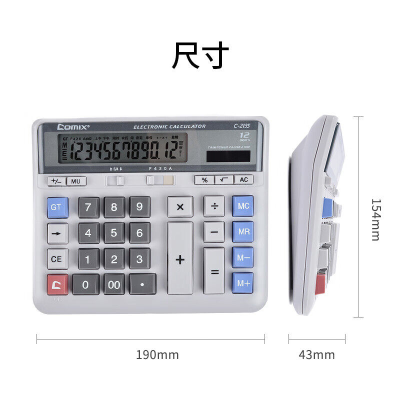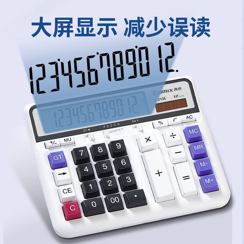 齐心计算器大按键财务会计用大显示屏大号双重电源计算机器商务店铺用办公用品专用