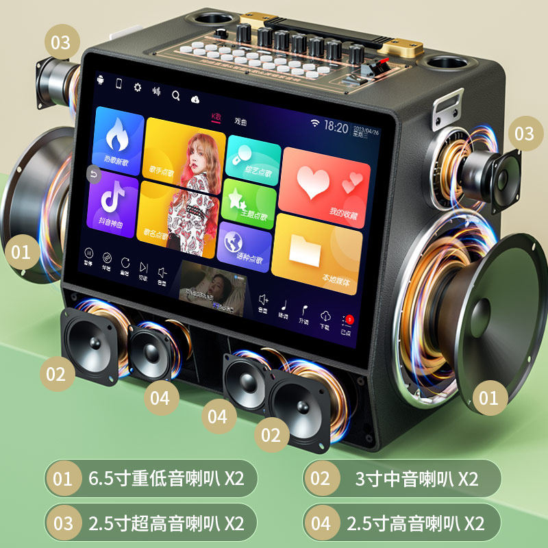 震撼八喇叭 重低音立体声 安卓K歌双系统