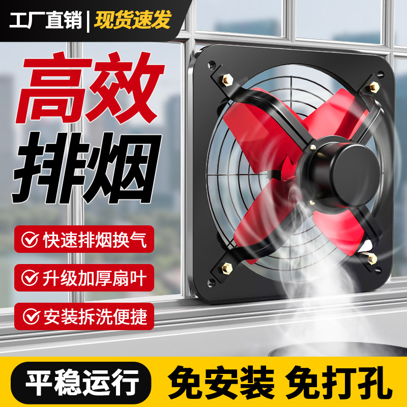 厨房抽油烟排气扇免打孔窗户式换气强力静音家用排风扇吸力通风机