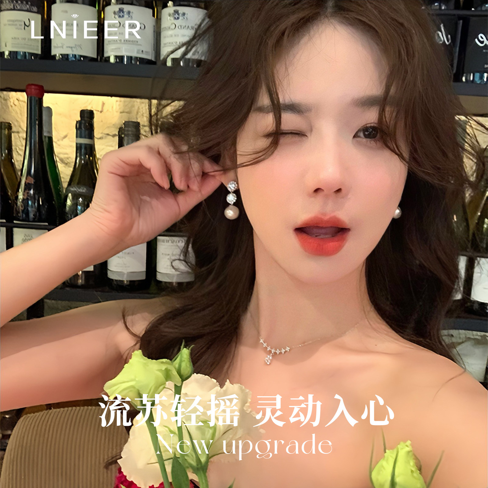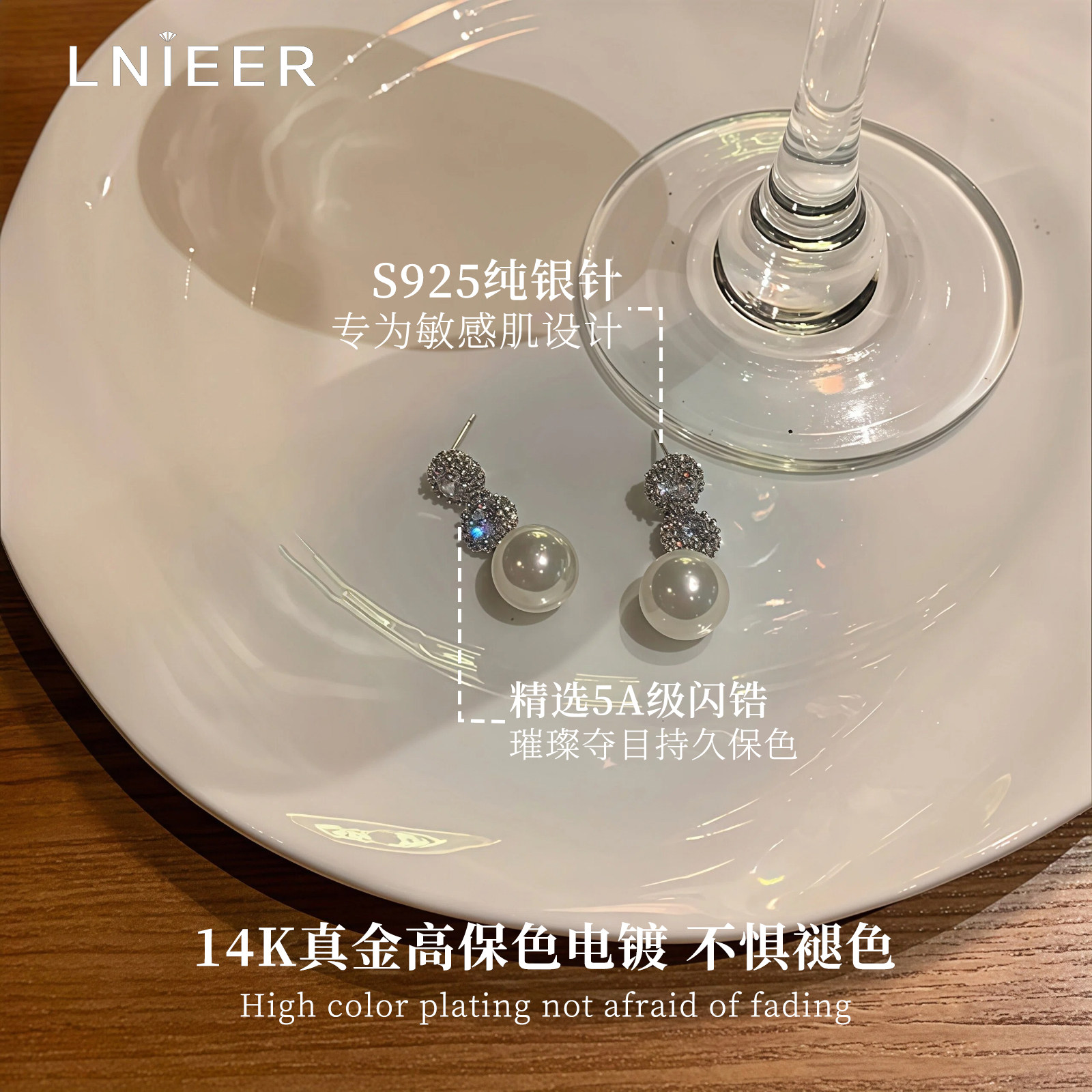S925纯银针公主闪锆珍珠耳环女2025新款爆款高级耳饰925银闪钻
