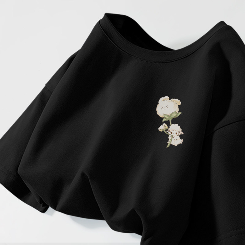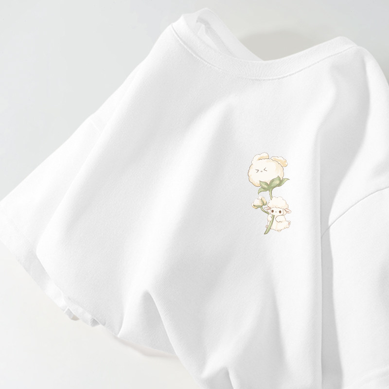 新国货100纯棉t恤女130支双面丝光棉短袖V圆领宽松大码夏季鸡心领