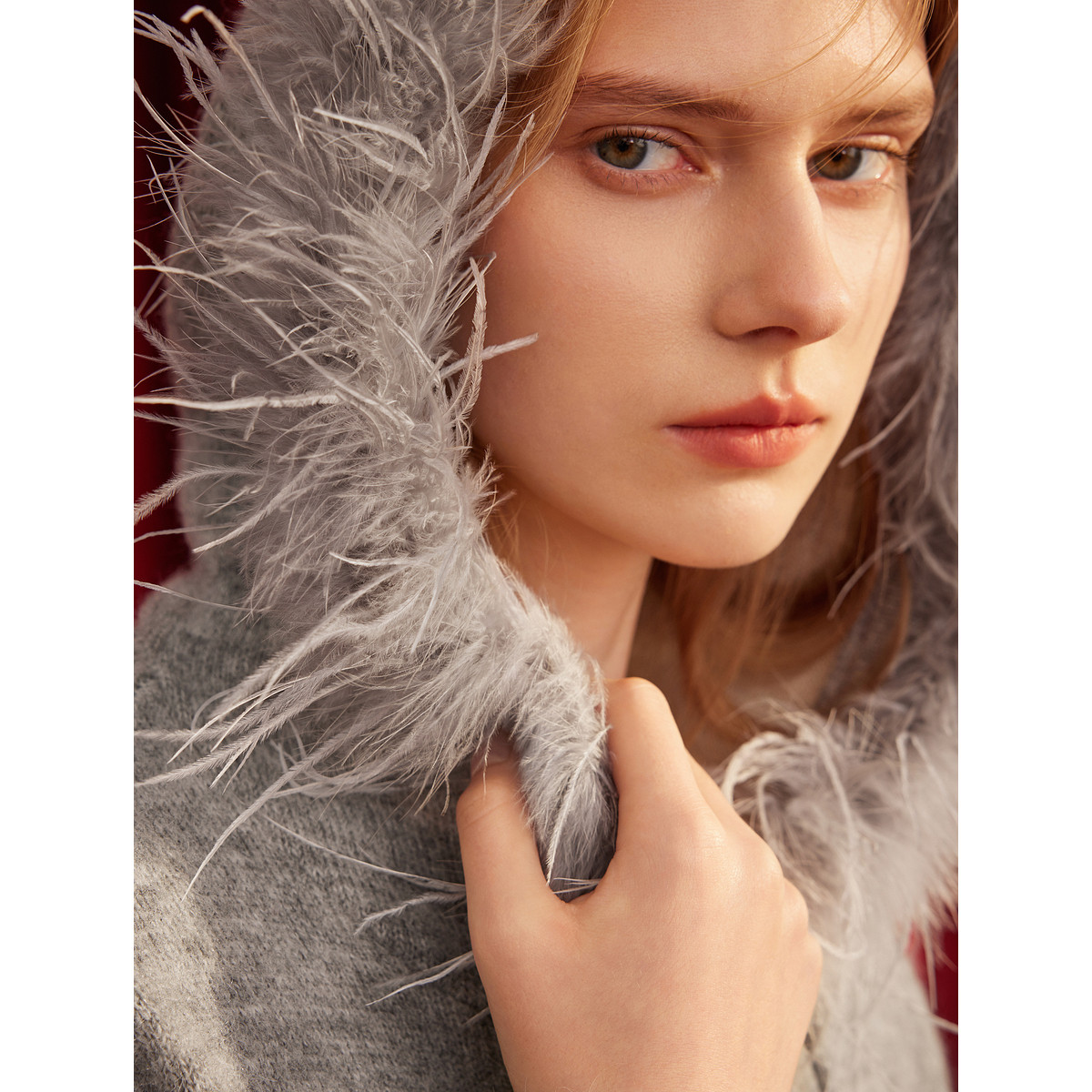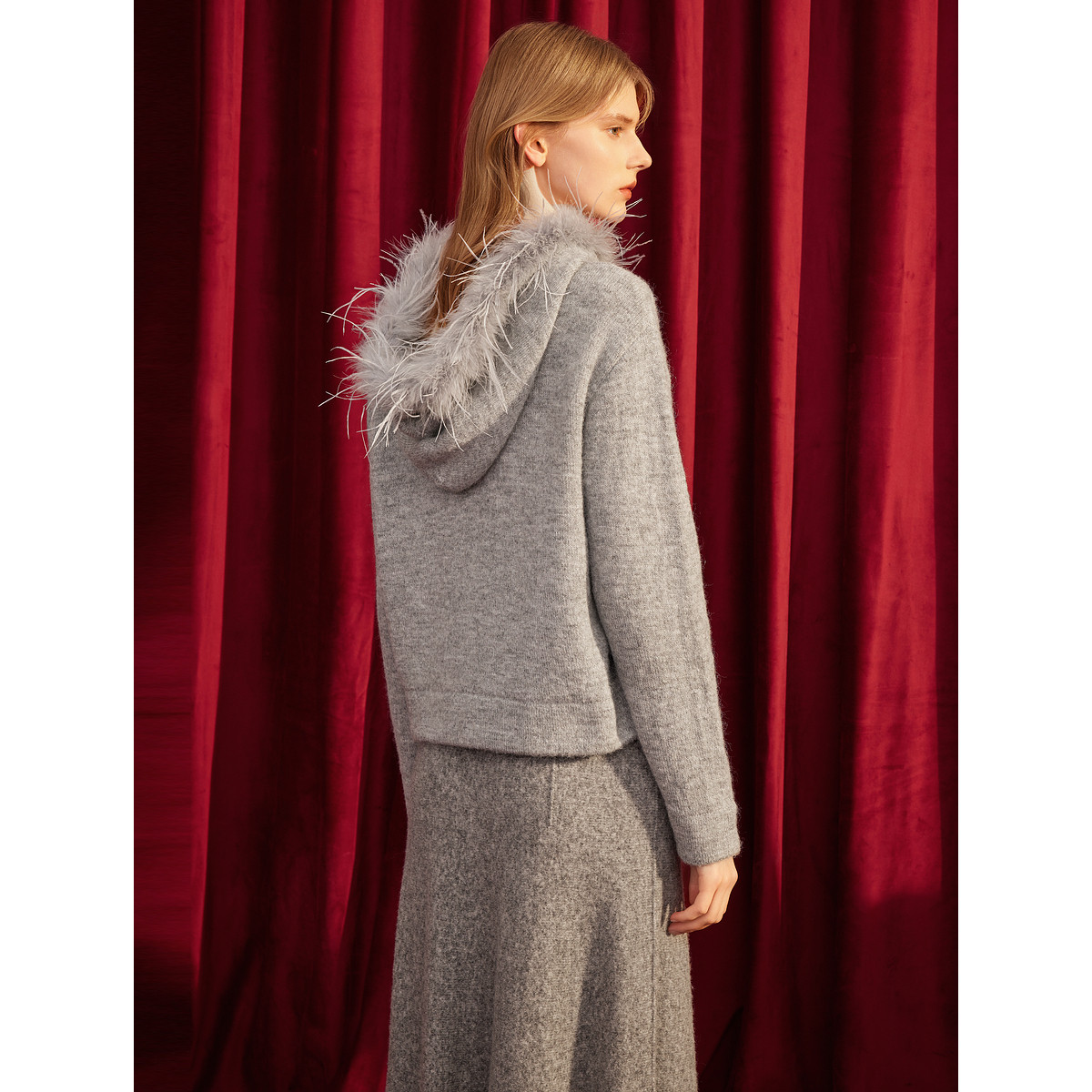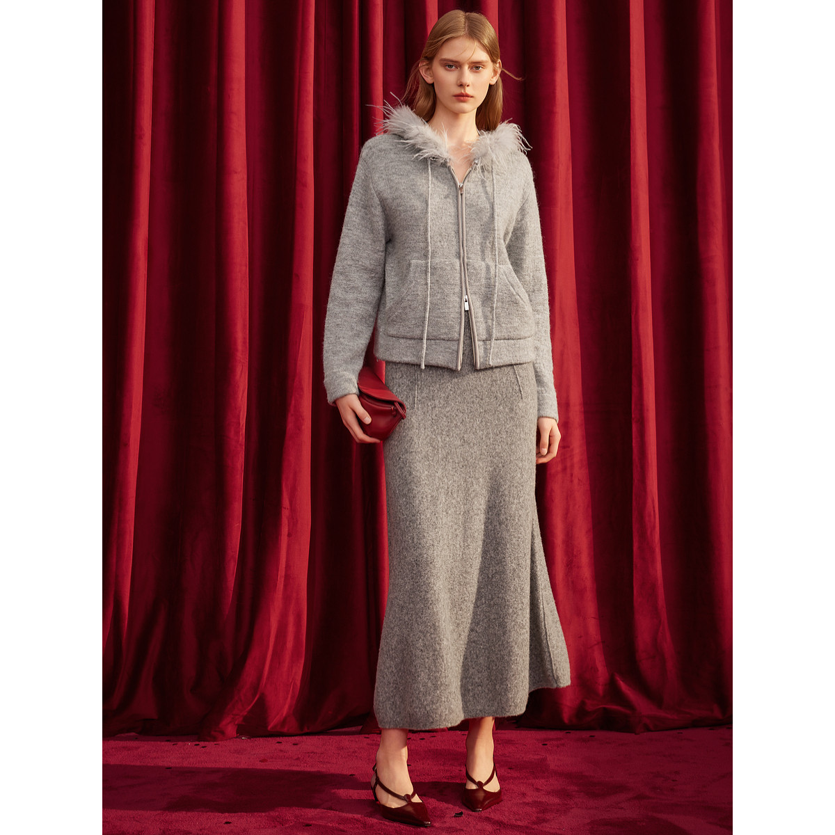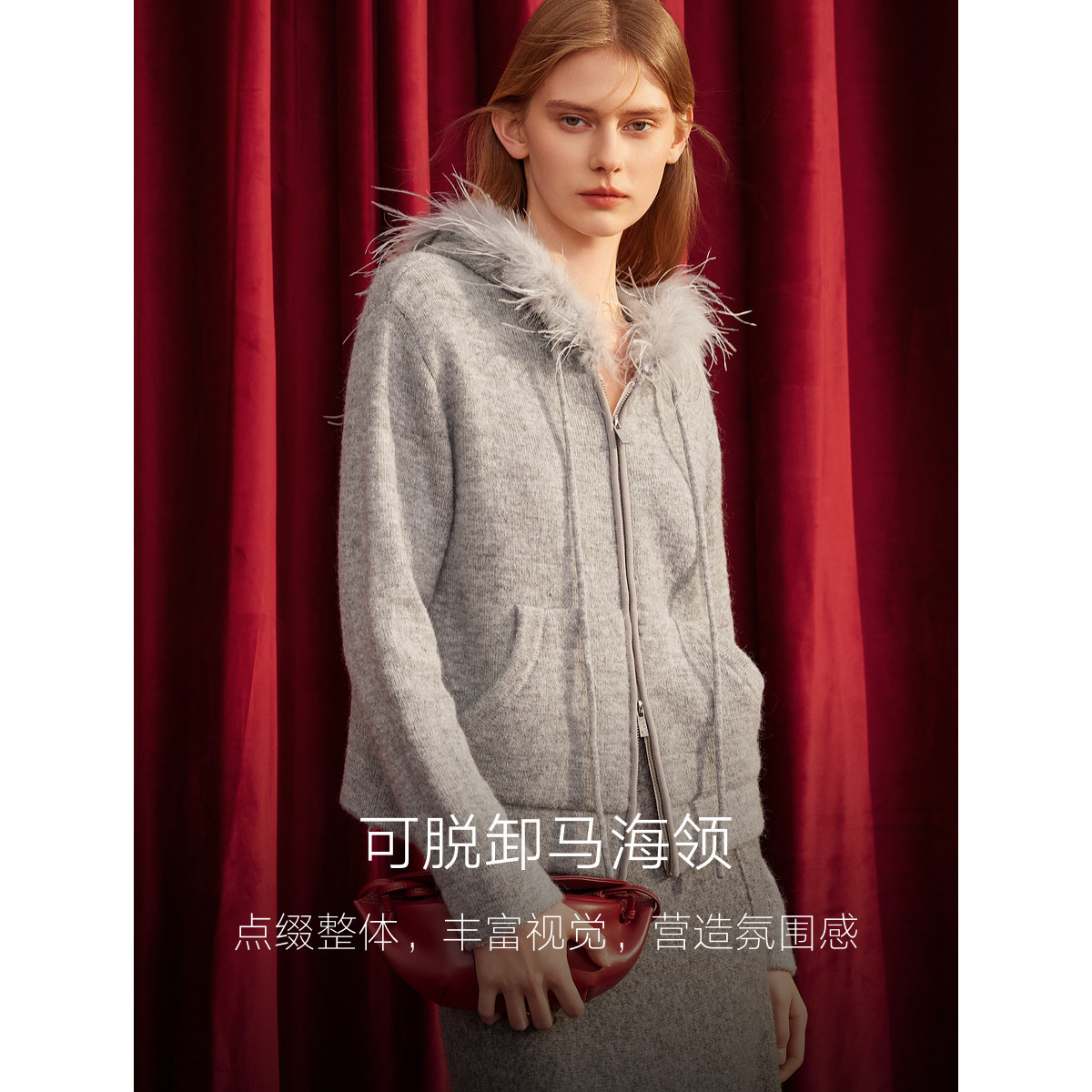 【XUZHI】ELLE格雷系马海毛卫衣式连帽开衫女2025秋新款时尚上衣