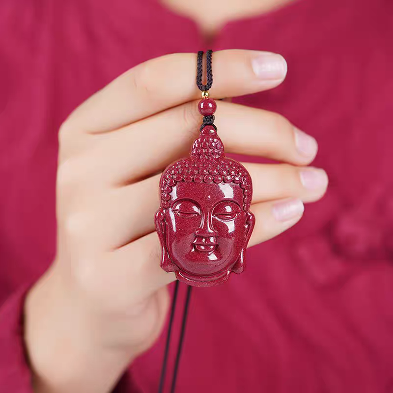 天然正品高含量紫金砂佛头吊坠男女款朱砂释迦牟尼佛首挂件项链