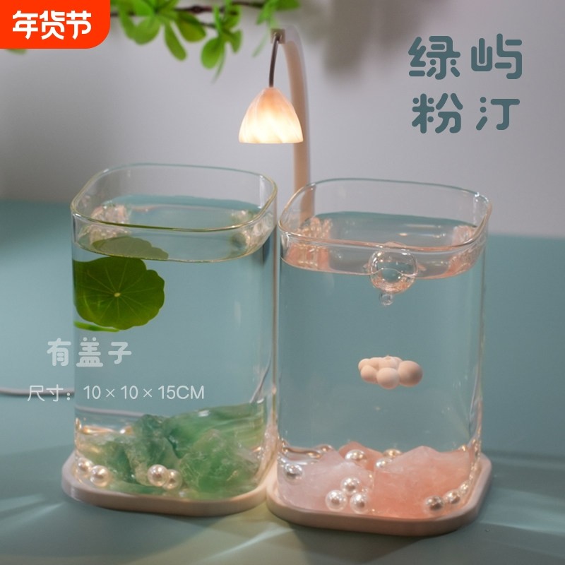 2025新款斗鱼专用隔离双缸客厅办公室造景摆件夜灯小型鱼缸桌面