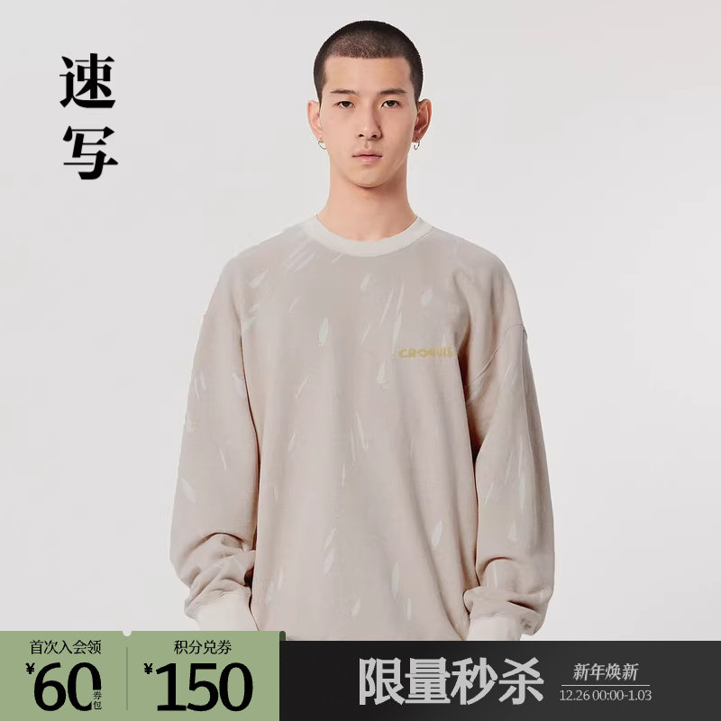 速写outlets奥莱男装早春折扣新款卫衣印花宽松休闲简约套头情侣