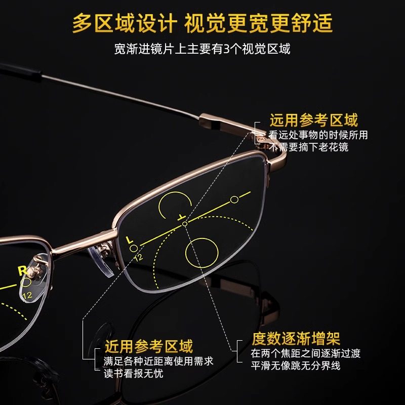 高档老花眼镜中老年高清老花镜男防蓝光老年人女多功能自动变焦镜