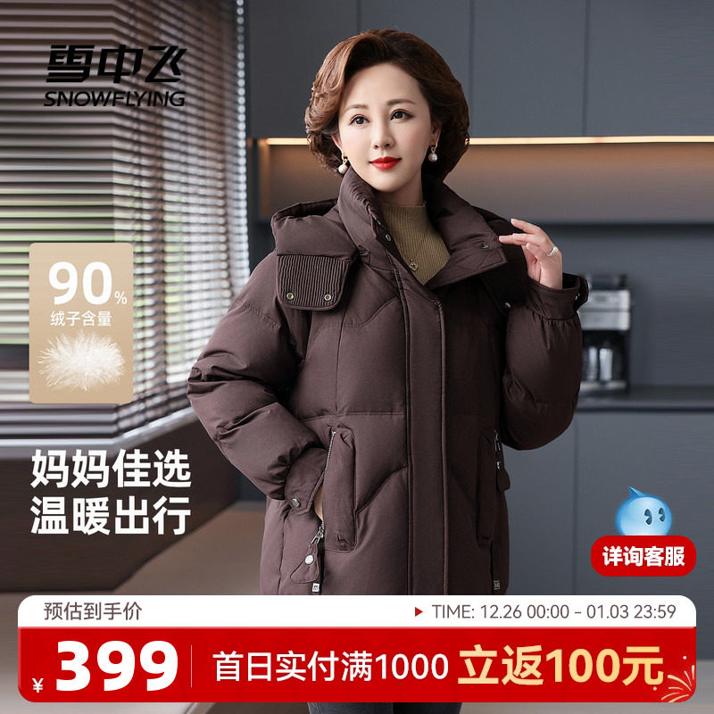 雪中飞2025冬新款女士羽绒服短款中老年优雅时尚大气保暖妈妈装
