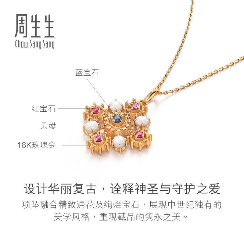 周生生18K玫瑰金V&A馆藏浪漫系列红蓝宝石贝母幸福守护套链94252U