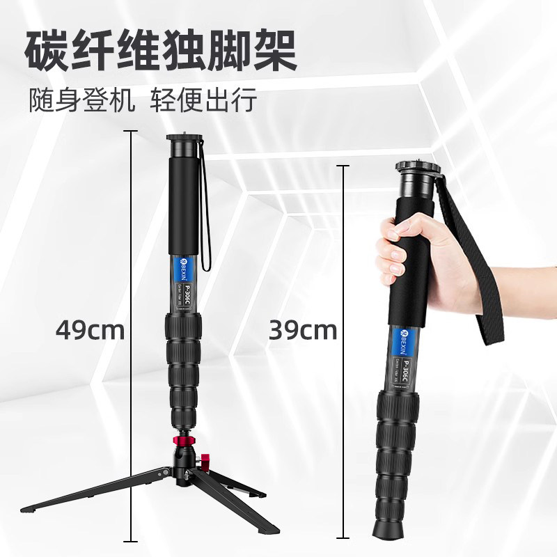 贝欣独脚架碳纤维摄像机单反微单专业单脚架摄影摄像婚纱录像支球形云台三脚架云台稳定器支架