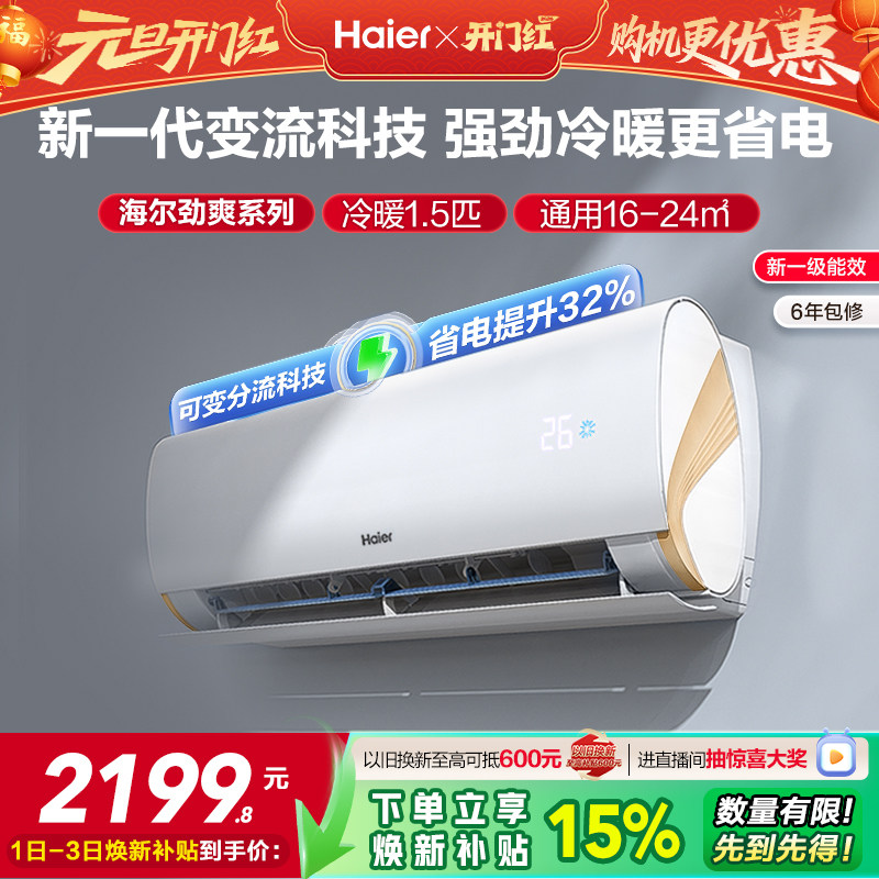 【国补8折】海尔空调1.5匹家用一级能效变频卧室挂机冷暖E1旗舰店