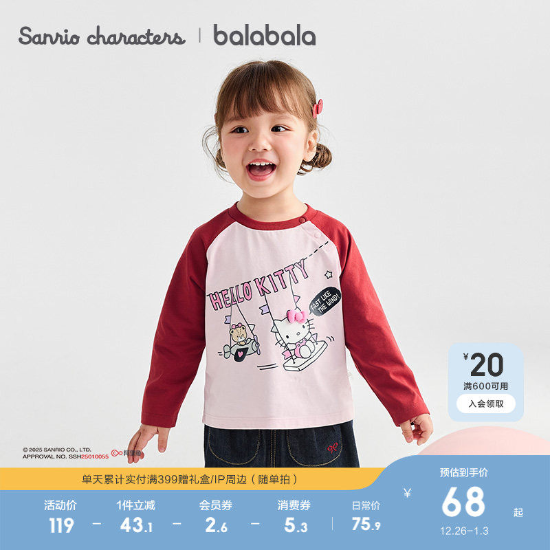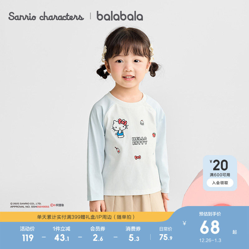 【HelloKittyIP】巴拉巴拉女宝宝长袖t恤速干2025秋新款