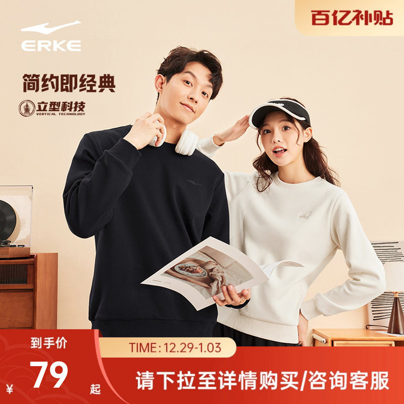 鸿星尔克卫衣男冬季新款男士情侣加绒运动休闲圆领长袖打底上衣女