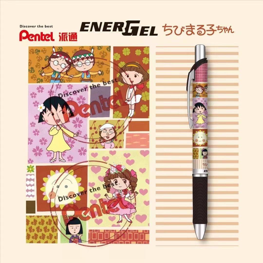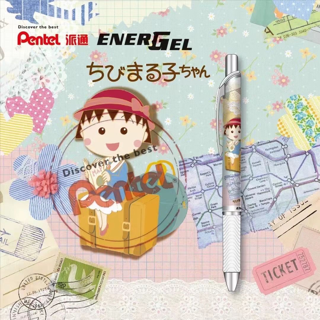 新品现货!樱桃小丸子限定款 日本pentel派通中性笔BLN75按动水笔学生考试速干黑笔美环花子动漫联名文具笔