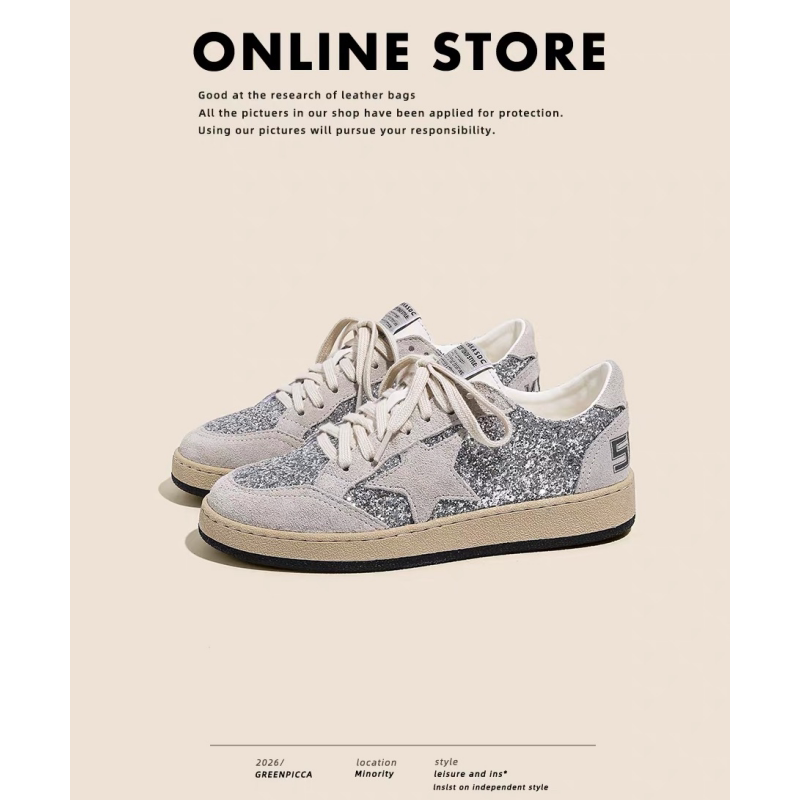 2026年春季新款亮片做旧星星小脏鞋女时尚舒适软底运动休闲板鞋潮