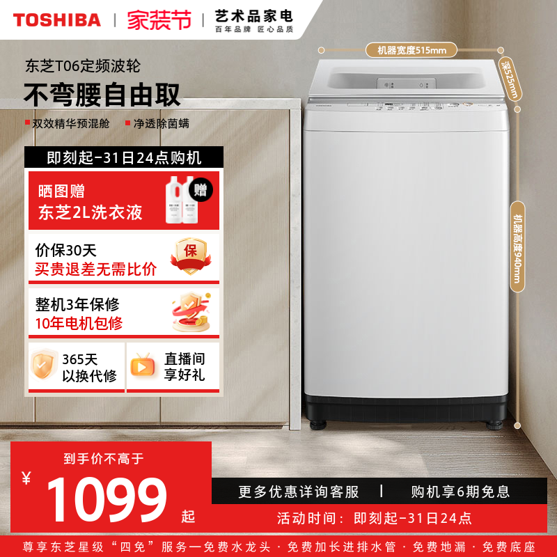 东芝8KG小型出租房用白色波轮洗衣机全自动家用不弯腰洗脱一体机