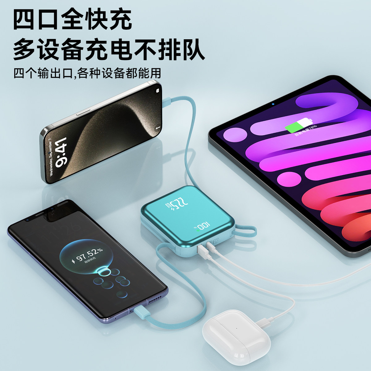 自带双线 双向快充超大容量适用苹果安卓